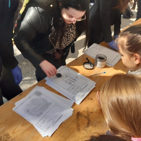 A Nemzeti Szakértői és Kutató Központ szakértője a bűnügyi technikusok munkájából adott ízelítőt a kicsiknek és nagyoknak egyaránt. Többek között az ujj- és tenyérlenyomat vételt, valamint a nyomkutatás egyes technikáit mutatta be az érdeklődőknek a kalocsai diákok segítségével.