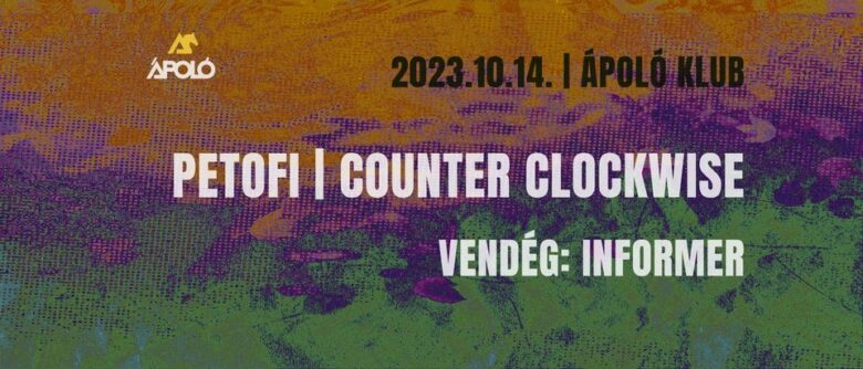• Szombaton 19:30-tól Petofi, Counter Clockwise és Informer az Ápolóban.