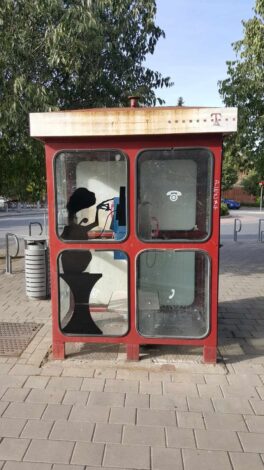 E.T. haza telefonál(na)… Steven Spielberg közismert földönkívülije ezúttal a Hírös városból próbál hazatárcsázni. A Magyar Kétfarkú Kutya Párt kecskeméti szervezetének passzivistái ugyanis megint nagyot alkottak: a Kecskeméti Piac melletti egyik telefonfülkébe költöztették be mindenki kedvenc ikonikus földönkívülijét.