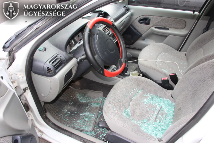 Az ügyészség a két férfit felfegyverkezve elkövetett rablás bűntettével, az idősebb vádlottat pedig a rablás mellett 2 rendbeli lopás bűntettével, garázdaság és lopás vétségével is vádolja és mindkét vádlottal szemben fegyházbüntetés kiszabását indítványozta. A vádlottak bűnösségéről a Kecskeméti Járásbíróság fog dönteni. A csatolt, a rendőrség által a helyszíni szemle során készített fényképeken a feltört gépkocsi látható.
