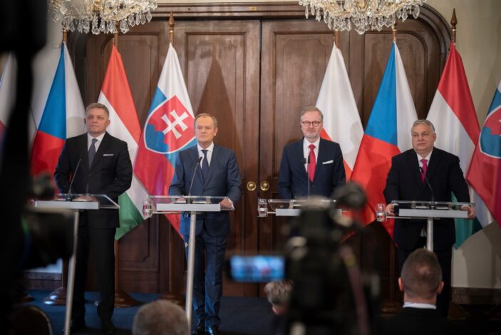 A V4-csúcs előtt kedden Petr Fiala cseh és Donald Tusk lengyel miniszterelnök külön tárgyalásokat folytatott, és természetesen kitértek a magyar és szlovák félre, akik Ukrajna katonai támogatásával nem értenek egyet. Tusk a kétoldalú találkozó után azt mondta, hogy emlékeztetni akarja arra Ficót és Orbánt, hogy a V4-eket arra alapozták, hogy a független államaik a Nyugathoz csatlakoznak, ennek köszönhető, hogy NATO és az Európai Unió tagjai lettek, és így segíthetnek Ukrajnának. Tusk egyébként a csúcs előtt azt nyilatkozta, hogy az egyeztetéseken kiderül, van-e értelme egyáltalán a visegrádi négyeknek.