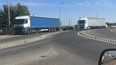 Ponyvás nyerges vs Laguna, egy sávot elfoglalnak – írta egy tag a Sebességmérés/Útinform Kecskemét nevű csoportba. Mint kiderült, a baleset még 13 óra után történt nem sokkal az 5-ös úton, az Axon körforgalomnál. A Rendőrség Útinformációs Rendszere szerint a helyszíni szemle körülbelül délután 2-ig fog tartani, addig kerüljétek el a helyszínt, ha tehetitek! Vigyázzatok magatokra, … Bővebben: Ponyvás nyergesvontató vs Laguna: baleset történt Axon körforgalomnál Kecskeméten