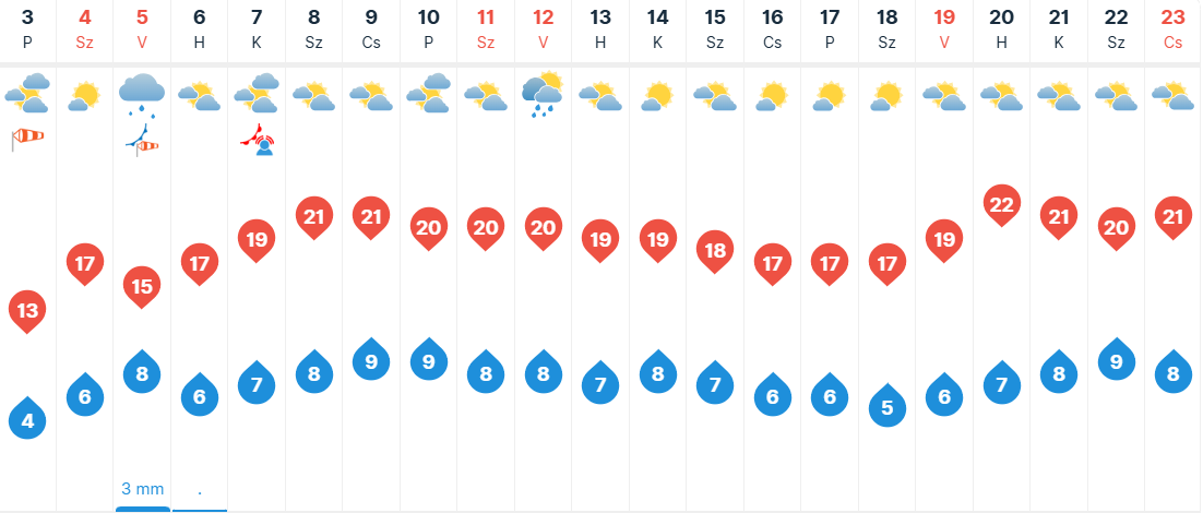 Szombaton eleinte keleten lehet több felhő, a határ mentén néhol gyenge eső is előfordulhat. Napközben itt is csökken, felszakadozik a felhőzet, és az ország más tájaihoz hasonlóan naposra fordul az idő. A szél napközben délire-délnyugatira fordul, helyenként megélénkül. Kora reggel keleten, délkeleten 5-8, máshol -3, +4 fok várható, majd délután 13-18 fokot mérhetünk.