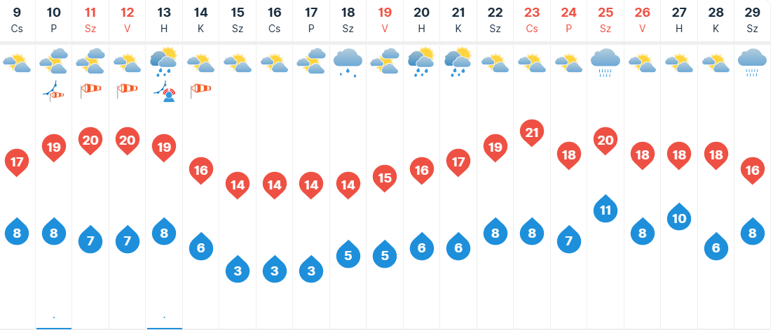 Csütörtökön északnyugat felől egyre több felhő sodródik majd fölénk, emiatt borongósabb napnak nézünk elébe Kecskeméten. Komolyabb eső nem várható, rövid időszakokra még a nap is kisüthet. Helyenként feltámadhat az északnyugati szél is. Kora reggel 8, napközben 17 fokra van kilátás.