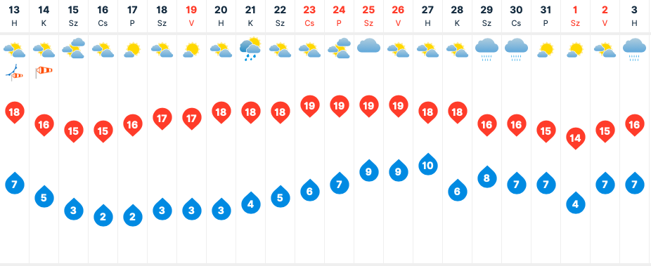 Kedden a hőmérséklet néhány fokkal csökken, ekkor 16 fok körül alakulhatnak a legmagasabb értékek, éjszaka pedig akár 5 fokig is lehűlhet a levegő!
