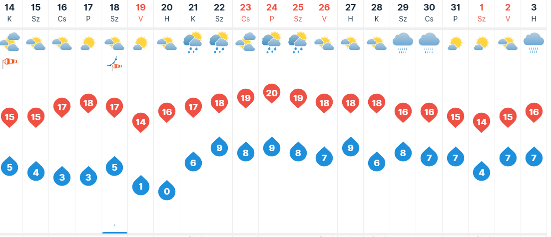 Szerdán a napsütést elsősorban gomolyfelhők zavarhatják meg, de csak északon, északnyugaton lehet kisebb eső és zápor. A légmozgás nem lesz jelentős. Hajnalban pára-, ködfoltok képződhetnek. Reggel elsősorban a fagyzugokban lehet gyenge fagy, majd délután 12-17 fokot mérhetünk.