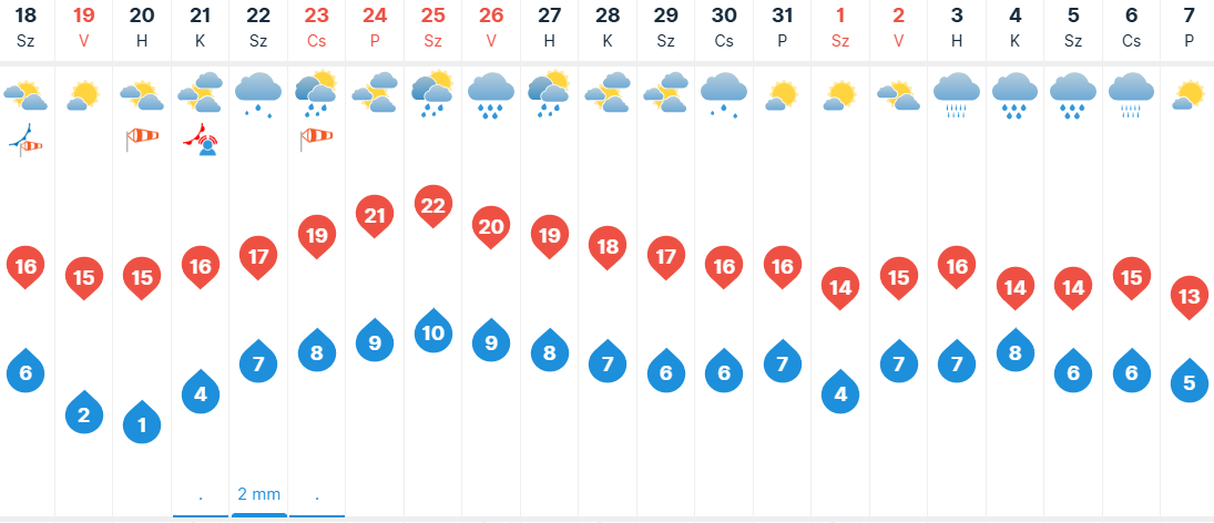 Szombaton egy hidegfront éri el hazánkat, melynek hatására a napos-gomolyfelhős időben futó záporok is kialakulhatnak. Sokfelé megélénkül, megerősödik az északnyugati szél. Hajnalra foltokban pára, köd képződhet. Kora reggel 6, délután pedig 16 fok körül alakul majd a hőmérséklet.