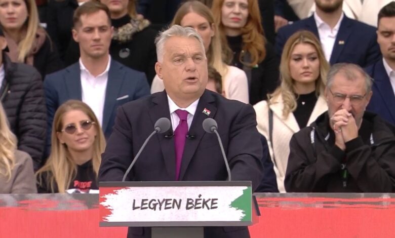 “Ma nem fegyver dördül, hanem ének szól. Nem vér hullik, hanem zászlók lobognak” – tette hozzá. A kormányfő kiemelte, hogy megmutatják a világnak, Magyarország nem felejt, nem engedi el hősei kezét és bármikor képes újakat teremteni. “Isten hozta a Békemenetet, Magyarország legnagyobb politikai erejét – fogalmazott Orbán Viktor, majd a békemenetet Európa legnagyobb nemzeti mozgalmának nevezte.