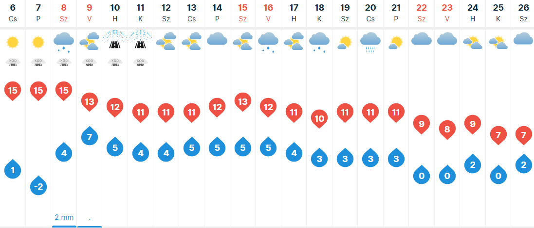Csütörtök reggelre ismét többfelé képződik majd pára és köd, de a nap nagy részében napos időben lesz részünk Kecskeméten. Számottevő csapadék sehol sem várható. Többfelé élénk, néhol északnyugaton erős lehet a délkeleti szél. A többfelé gyengén fagyos hajnalt követően a legmagasabb hőmérséklet 11 és 16 fok között alakul.