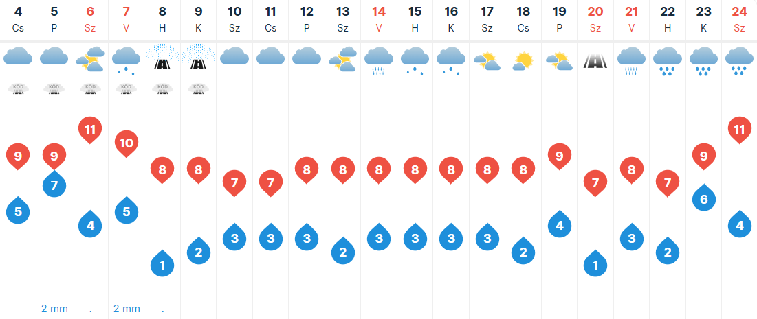 Csütörtökön is marad az erősen felhős, borongós, helyenként tartósan párás, ködös idő. Városunkban csapadéktól nem kell tartanunk, de a keleties szél élénk lehet. Hajnalban 4, majd napközben 9 fokot mérhetünk majd Kecskeméten.