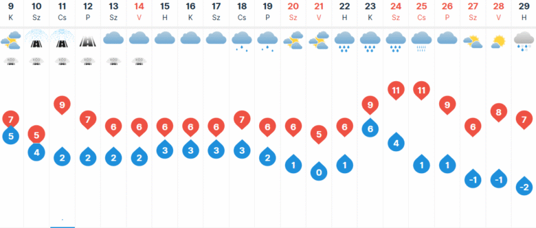 Erősen felhős, borongós és szürke időben folytatjuk a hetet Kecskeméten. 5 és 7 fok közötti hőmérsékletet mérhetünk városunkban.