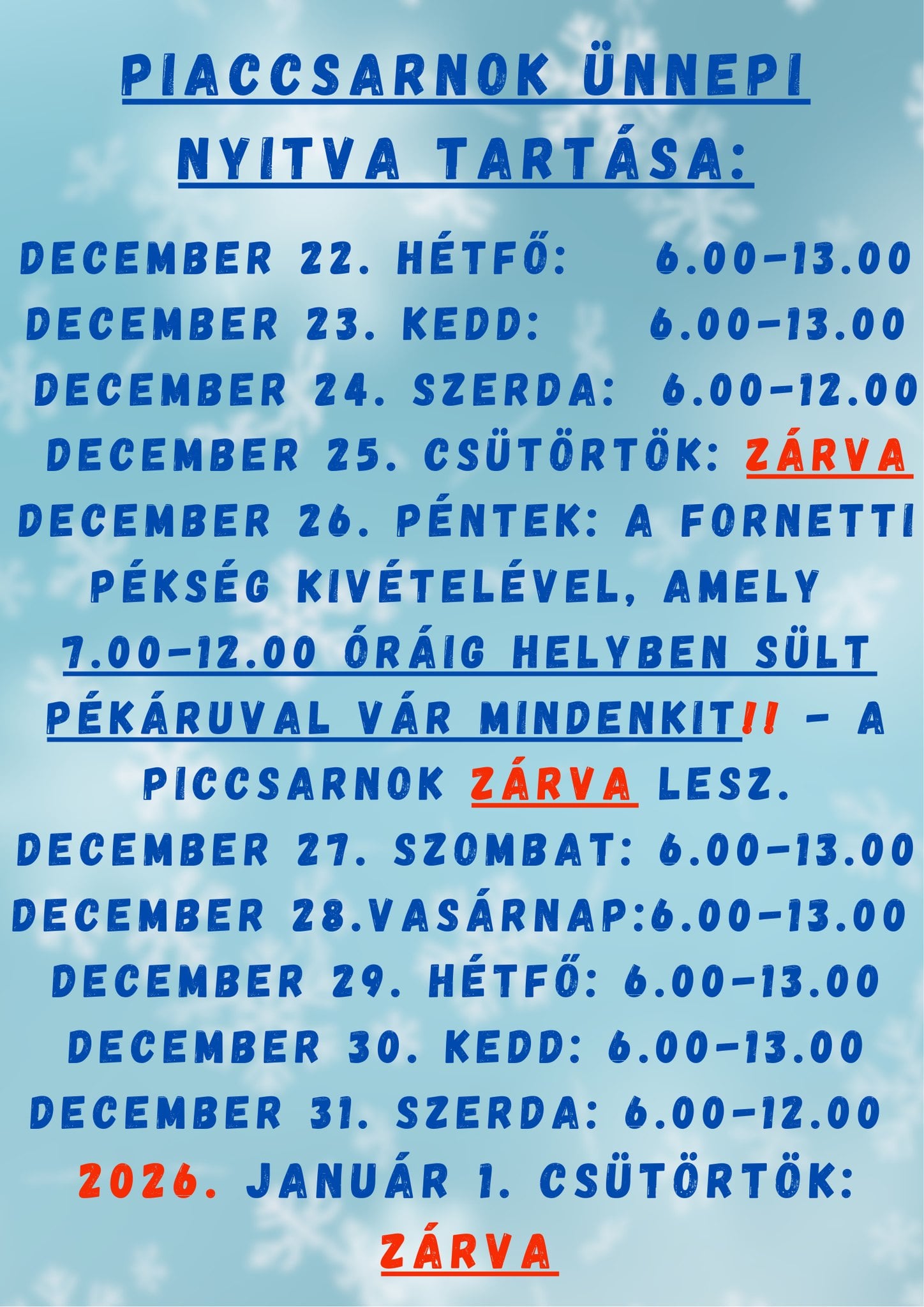 Indul a karácsonyi roham a boltokban, így érdemes képben lenni azzal, hogy melyik üzlet meddig, illetve mikor lesz nyitva a következő napokban! Az élelmiszerláncok többsége december 24-én még nyitva tart, jellemzően 12 óráig, ugyanakkor az ünnepi nyitvatartás üzletenként eltérhet. December 25–26-án és január 1-jén szinte minden bolt bezár Kecskeméten, szilveszterkor pedig lánconként eltérő időpontokig lehet majd vásárolni.