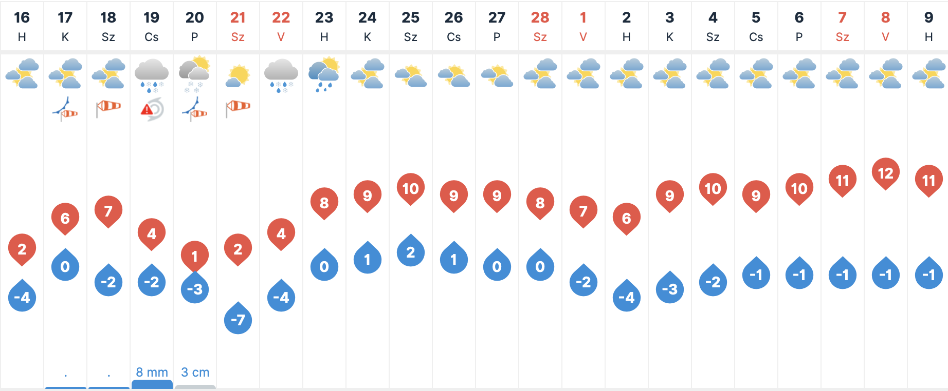 Kedden folytatódik a lehűlés, újabb hidegfront érkezik térségünkbe, ami megnehezítheti az arra érzékenyek napját. A legmagasabb hőmérséklet ezen a napon 6 fok lehet, és erős szélre kell számítanunk.