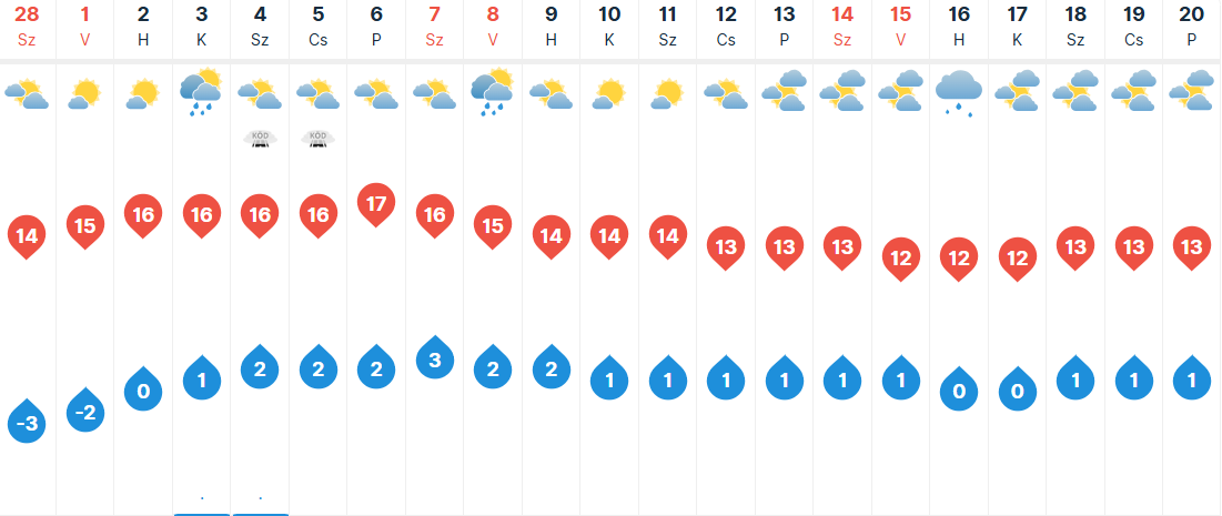 Vasárnap sok napsütésre, kevés felhőre, csapadékmentes időre számíthatunk. A legtöbb helyen gyenge, mérsékelt marad a légmozgás. Helyenként párás, ködös lehet a reggel. Kora reggelre -6 és +2 fok közé csökken a hőmérséklet, viszont napközben kellemes kora tavaszi időben lesz részünk, a csúcsértékek 12 és 17 fok között alakulnak.