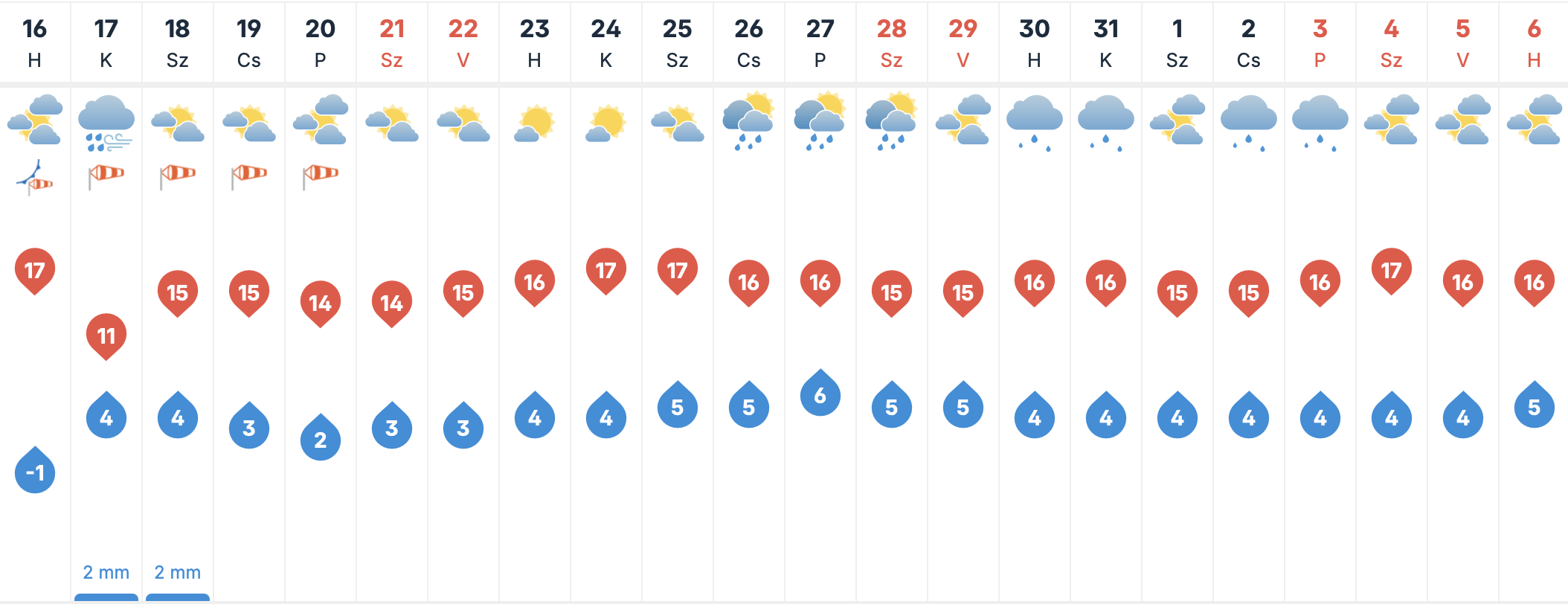 Kedden a felhők tovább szaporodnak Kecskemét felett, ezen a napon az égbolt teljesen borult lesz, a napot szinte nem is láthatjuk majd, és csapadék is előfordulhat. A széllel pedig a lehűlés is megérkezik, ekkor a legmagamasabb hőmérséklet már csak 11 fok körül alakul.