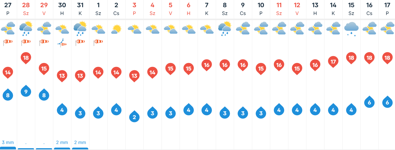 Pénteken borult, esős, záporos napunk lehet Kecskeméten, sőt egy-egy zivatar sem kizárt. A felhők és a csapadék mellett sokfelé lehet erős, viharos az északias szél is. Reggel 8 fok körüli minimumokra van kilátás, délután 14 fok körül alakul majd a hőmérséklet városunkban.