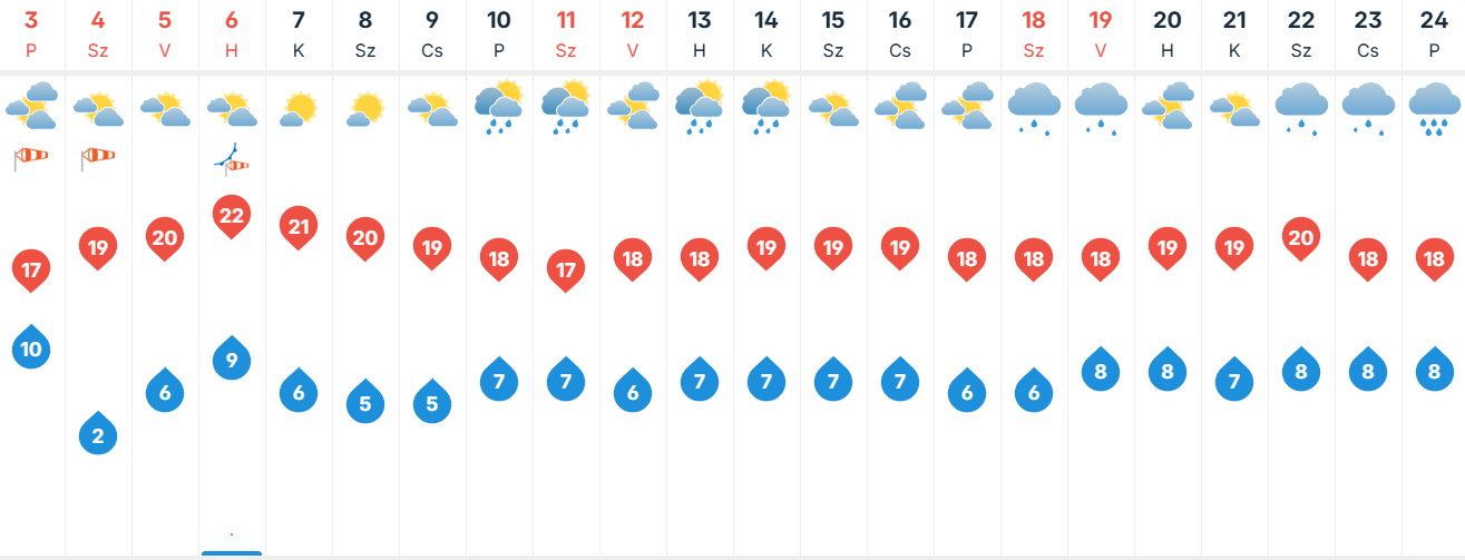 Szombaton eleinte kellemes, napsütéses időben bízhatunk, de később megnövekedhet a gomolyfelhőzet, viszont említésre méltó csapadék sehol sem várható. Élénk, erős lesz az északnyugati szél. Hajnalban -2 és +6, napközben pedig 15 és 20 fok között alakul a hőmérséklet.