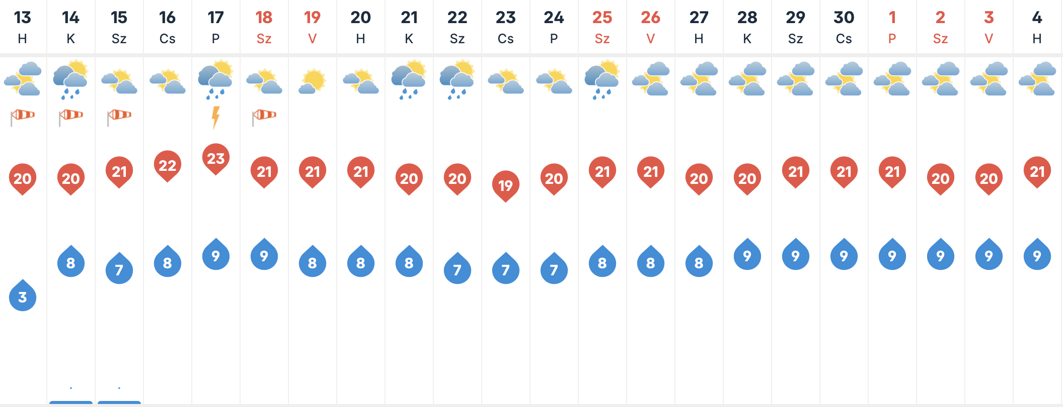 Kedden folytatódik a tavaszi, de mégis borult és szeles időjárás. Ezen a napon szintén 20 fok körül alakulhatnak a csúcsértékékek, miközben felhők fogják tarkítani az égboltot és élénk szélben lesz részünk.