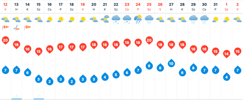Vasárnap folytatódik az elmúlt napokra jellemző őszi időjárás Kecskeméten: közepesen felhős égbolt, mérsékelt északnyugati szél és 20 fok körüli csúcsértékek várhatók városunkban.