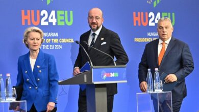 A budapesti informális uniós találkozó után Ursula von der Leyen, az Európai Bizottság elnöke, Charles Michel, az Európai Tanács elnöke,…