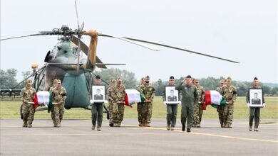 Hazahozták és katonai tiszteletadással fogadták a Horvátországban, kiképzés közben helikopter-balesetben meghalt magyar katonák földi maradványait kedden Szolnokon. Az áldozatok magyar zászlóval…
