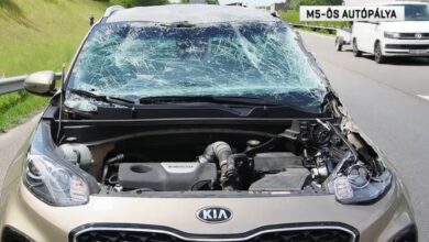 Leszakadó magasfeszültségű vezeték rombolt az M5-ösön, három autót és egy katonai terepjárókat szállító kamiont is összetört Kecskemétnél